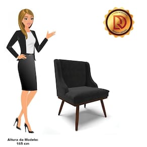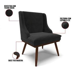 Cadeira De Jantar Liz Suede Base Fixa Madeira Pés Palito Tabaco - D`rossi Cor Preto