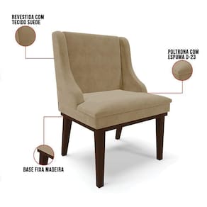 Experimente deixar sua decoração com bom gosto e qualidade com a cadeira de jantar Liz. É perfeita para você não abre mão de qualidade e requinte na hora das refeições e confraternizações com amigos e familiares. Produzida com Base Fixa Madeira Tabaco que suportam até 120 kg, estrutura ecologicamente correta de madeira de eucalipto e pinus, oferece durabilidade e qualidade ao móvel, seu estofamento é com espuma de densidade D-23, revestido em tecido Suede. Sofisticada e excelente para deixar sua sala de jantar mais aconchegante. Compre sem sair de casa!