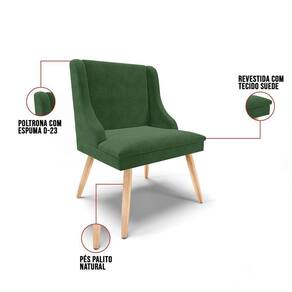 Complemente a composição da sua sala de jantar com o que é realmente necessário; com a cadeira Liz, e transforme o simples em extraordinário! Com estrutura ecologicamente correta de madeira de eucalipto e pinus, oferece durabilidade e qualidade ao móvel, seu estofamento é com espuma de densidade D-23, revestido em tecido em Suede no tom Verde, que oferece muito conforto e resistência ao sentar, com aquela sensação de maciez e bem-estar. Com os nossos produtos você monta uma cozinha aconchegante e bonita. Escolha a sua!