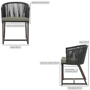 Fotos meramente ilustrativas. Tonalidades podem variar dependendo do monitor. Os objetos que ambientam as Fotos nao acompanham o produto. Antes de comprar o seu produto verifique as medidas, o onde pretende instalar e se necessario contratar o servico de um qualificado. Produto conhecido como: Cadeira Noronha, Cadeira de aluminio, Corda nautica, Estofado impermeavel, Moveis de exterior, Cadeira resistente a agua, Design moderno em Cadeira, Cadeira para area externa, Cadeira de jardim, Moveis para varanda, Cadeira duravel, Cadeira de alta qualidade, Conforto em Cadeira, Cadeira elegante.