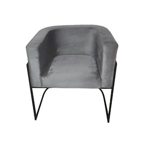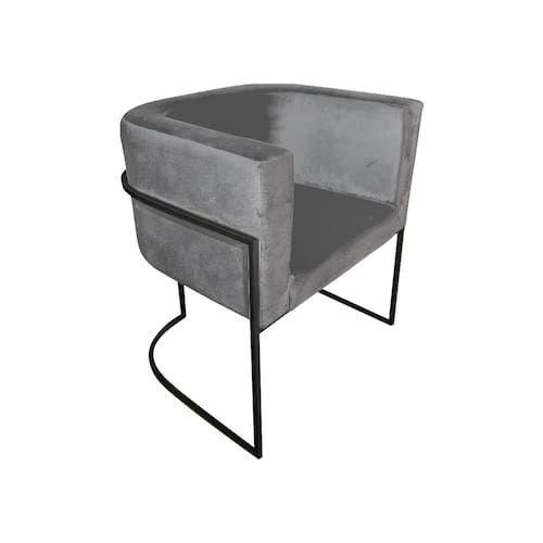 Cadeira de Jantar Premium Base de Ferro Preta Veludo Cinza