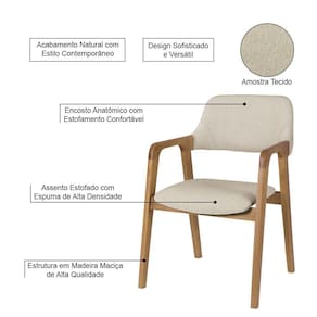 AS IMAGENS SÃO MERAMENTE ILUSTRATIVAS E PODEM SOFRER VARIAÇÕES DE COR E PEQUENOS DETALHES DE ACORDO COM O SEU MONITOR, ILUMINAÇÃO DO AMBIENTE E ATÉ MESMO A SUA PERCEPÇÃO VISUAL.Cadeira de Jantar Ruth Estrutura em Madeira MaciÃa Design Retrà ContemporÃneo Linho Bege