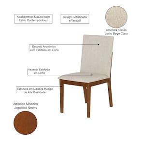 AS IMAGENS SÃO MERAMENTE ILUSTRATIVAS E PODEM SOFRER VARIAÇÕES DE COR E PEQUENOS DETALHES DE ACORDO COM O SEU MONITOR, ILUMINAÇÃO DO AMBIENTE E ATÉ MESMO A SUA PERCEPÇÃO VISUAL.Cadeira de Jantar Sofia Moderna Jequitibà Nozes Linho Bege