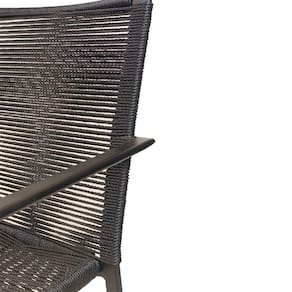 O encosto e assento é feito em corda sintética trançadas artesanalmente.