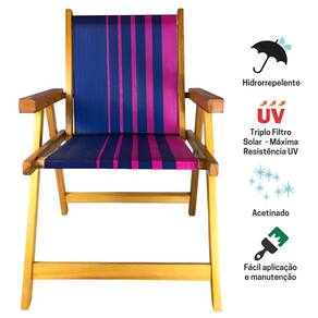 Dobrável e fácil de carregar, a cadeira em madeira é ideal para ser levada para praia, camping ou deixada no seu jardim.