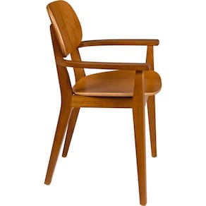 Cadeira De Madeira Tramontina London Em Tauarí Amêndoa Com Braços A Cadeira de Madeira Tramontina London em Tauarí Amêndoa com Braços da linha Piazza irá renovar o seu ambiente com seu design sofisticado, linhas marcantes e proporcionar alto conforto para o uso diário. Com braços, ela se torna ainda mais robusta e imponente. Por ser produzida em madeira Tauarí, garante alta resistência e durabilidade, além disso, a madeira torna o espaço mais aconchegante e convidativo. Linha ou Coleção - London Largura - 573 mm Profundidade - 523 mm Altura - 830 mm Material Principal - Madeira Tauarí Material das Pernas - Madeira Tauarí Material do Assento - Madeira Tauarí Material do Encosto - Madeira Tauarí Cor - Amêndoa Acabamento - Verniz Acabamento das Pernas - Verniz Estofada - Não Quantidade de Itens - 1 Altura do chão até o assento - 450 mm Suporta até (kg) - 150 kg Empilhável - Não Braço - Sim Altura do chão até o braço - 650 mm Tipo de Assento - Fixo Antiderrapante - Sim Necessita Montagem - Não Mais Informações - Cadeira com braços de madeira TauaríAcabamento com verniz tingido de amêndoaProduto é entregue montado Recomendações de Uso - Para limpeza da madeira, utilize um pano limpo e macio com uma solução de água e sabão líquido neutro, secando logo após. Não use produtos químicos e/ou materiais corrosivos como solventes, detergentes, soda, cloro, ácido, ceras e lustra-móveis.Não sente com roupa úmida ou molhada no móvel.Mantenha os produtos em ambientes arejados e nunca os deixe guardados em embalagens plásticas. Cômodo Indicado - Cozinhas Peso - 6 kg Marca - Tramontina Garantia do fabricante - 12 meses para defeitos de fabricação Aviso sobre o produto - Todas as imagens são meramente ilustrativas Garantia do fabricante - 12
