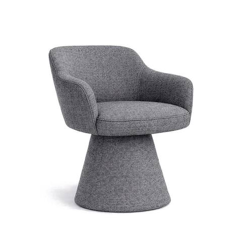o assento conta com espuma D-28 HR, que oferece firmeza na medida certa para o uso diário, enquanto o encosto recebe espuma D-23 com fibra, garantindo apoio agradável e postura correta durante longos períodos à mesa.A base cone estofada é um dos grandes diferenciais do modelo. Ela reforça a unidade do design e eleva a percepção de qualidade, criando uma peça visualmente contínua, sólida e bem-acabada.