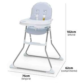 Produto Nacional; Estrutura em Aço; Cadeira alta ideal para bebês de até 23 quilos; Assento e encosto acolchoado em plástico laminado, facilitando a limpeza; Bandeja e apoio de pés; Bandeja removível que permite aproximação a mesa de refeição; Bandeja com porta copos; Cinto de segurança de 5 pontos; Cinto de segurança com 2 regulagem de altura; Fácil de desmontar; Trava de segurança; Cadeira desmontável – embalagem mais compacta; Composição têxtil 100% PVC. A Galzerano é uma empresa com mais de 60 anos de tradição em desenvolver e fabricar produtos para bebês: criar conexões com as famílias desenvolvendo produtos com segurança e design inteligente, entregando conforto e praticidade de geração em geração.