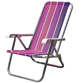 Material da Estrutura: Alumínio Tipo de Tela: Polietileno com listras coloridas Braços: Polietileno Dimensões (L x P x A): 57,6 x 10,4 x 74,7 cm Peso Unitário: 1,59 kg
