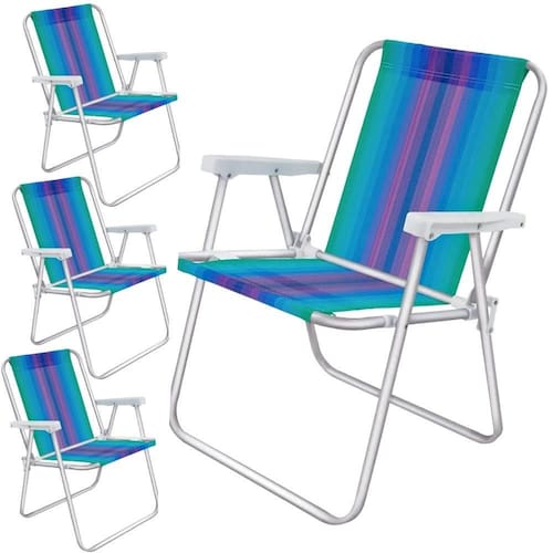 Cadeira de Praia Alta em Alumínio 4 Unidades Degradê Verde, Azul e Lilás MOR