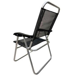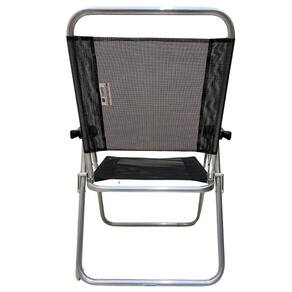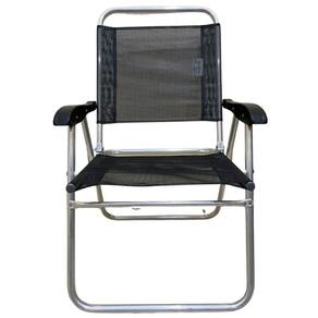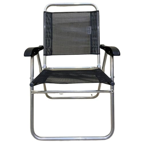 Esta cadeira de praia alta é confeccionada em tecido sanete poliéster e possui uma estrutura de alumínio. O braço é de plástico e da mesma cor do tecido. A cadeira tem capacidade para suportar um peso de até 100 Kgs.
