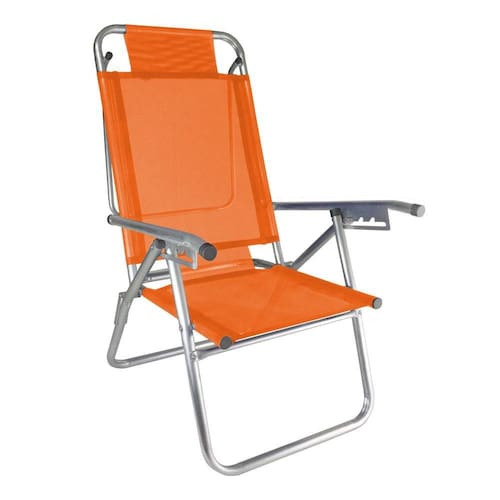 Cadeira de Praia Alumínio Reforçada 5 Posições Infinita UP Laranja Zaka 120 KG