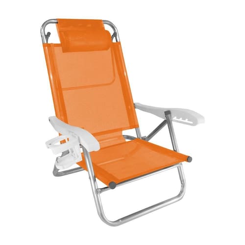 Cadeira de Praia Alumínio Reforçada 5 Posições Top Line Laranja Zaka 120 KG