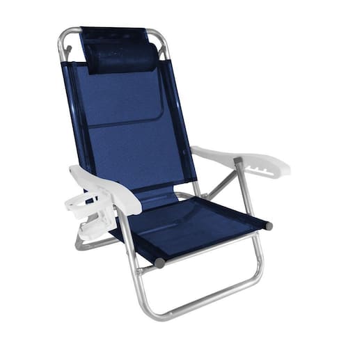 Cadeira de Praia Alumínio Reforçada 5 Posições Top Line Marinho Zaka 120 KG