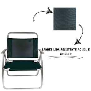 A tela em sannet liso, utilizada no assento e no encosto, possui proteção UV e tratamento anti-mofo, aumentando a durabilidade do produto e facilitando a limpeza, sendo ideal para uso ao ar livre. As peças plásticas, feitas em polipropileno, são robustas e oferecem maior suporte estrutural. Já os rebites em aço complementam a resistência do produto, garantindo estabilidade mesmo sob condições de uso intenso.