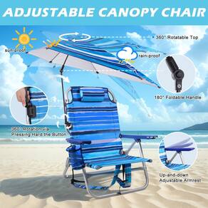 - [Armazenamento conveniente e guarda-chuva removível] Este conjunto inclui uma mochila de cadeira de praia e um guarda-chuva inclinado. O design de guarda-chuva ajustável e removível de 360° oferece sombra do sol e da chuva, permitindo que você aproveite totalmente o ar livre. Mantenha todos os seus itens essenciais por perto com uma bolsa térmica traseira exclusiva, bolsa de armazenamento, suporte de copo e compartimento para telefone nesta cadeira externa
