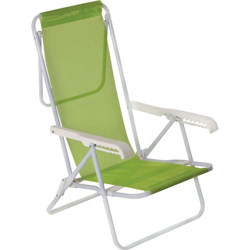 A cadeira Mor Reclinável é dobrável, leve, prática e vem com 8 opções de posições, para o seu conforto. Esta cadeira é ideal para banho de sol, pois possui um apoio que permite maior estabilidade para a cadeira na posição horizontal. Sua estrutura é em tubo de aço carbono, com acabamento em pintura epóxi a pó branca e peças plásticas em polipropileno. Tela 100% polietileno. Características do produto: - Cadeira dobrável e leve - Reclinável em 8 posições - Encosto grande, ideal para tomar sol Especificações técnicas: Marca: Mor Modelo: Reclinável Cor: Verde Peso Máximo: 100kg Dimensões: 65,5 x 54,5 x 87 cm Peso aproximado: 2,89kg Cuidados Especiais: Lavagem manual. Não usar alvejamento a base de cloro. Não limpar a seco. Não remover manchas com solventes.