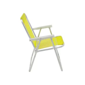 CADEIRA BEL ALTA LAZY ALUMINIO SANNET- AMARELA BEL FIXA Cadeira de praia Sannet Lazy Bel é um produto nacional.Confeccionada em Sannet material 100% Poliéster com revestimento PVC.A estrutura totalmente em alumínio proporciona leveza e facilidade de transporte além suportar até 110Kg. CARACTERÍSTICAS PRINCIPAIS: - Modelo: Cadeira Alta Lazy Sannet- Material Da Estrutura: Alumínio- Peso Suportado: até 110Kg- Altura do Assento: 35cm- Apoio Para Os Braços: Sim- Medidas do produto montado: CxLxA 48x67x72cm CARACTERÍSTICAS TÉCNICAS:· Tela 100% Poliéster com revestimento em PVC· Estrutura em Alumínio· Apoios de braço em Polipropileno· Dobrável· Leve e fácil de transportar· Mais praticidade e conforto
