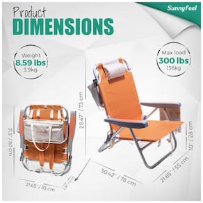 Cadeira de Praia Portátil com 5 Posições e Mochila para Bebidas, Sunnyfeel, Laranja