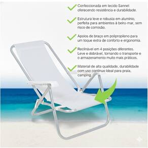 Estrutura leve e robusta em alumínio, perfeita para ambientes à beira-mar, sem risco de corrosão