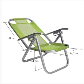 Cadeira de Praia Reclinável Alta Ipanema Verde CAD0395 Botafogo A Cadeira de Praia Reclinável Alta Ipanema Verde Primavera é a escolha ideal para quem deseja conforto, praticidade e um toque de sofisticação para seus momentos de lazer. Parte da linha premium da Botafogo Lar & Lazer, a cadeira Ipanema é a preferida dos cariocas e, se você visitar o Rio de Janeiro, com certeza irá se deparar com ela nas famosas praias da cidade. Com estrutura de alumínio retangular e assento em tela de PVC Sannet, a cadeira oferece resistência e conforto excepcionais, além de ser dobrável e reclinável em até 5 posições, permitindo o ajuste perfeito para o seu descanso. Ela suporta até 120 kg e é superleve, com apenas 2,70 kg, o que facilita o transporte para qualquer lugar. Especificações: Medidas da Cadeira Aberta:Largura do Assento: 44 cmAltura do chão ao assento : 34 cmAltura do Encosto: 67 cmMedidas quando fechada:Comprimento x Largura x Altura L x C x H : 58 x 9,5 x 82,5 cmPeso: 2,70 kgCapacidade Máxima: 120 kgCor: Verde Primavera de 3 meses fornecida pelo fabricante. Imagens meramente ilustrativas. Código Interno: 230657 Modelo: CAD0395 EAN: 7908155402058 Marca: Não Informado