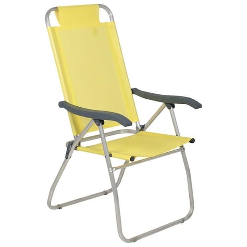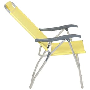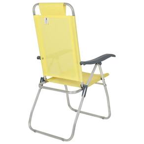 Especificações Tela: 100% poliéster com revestimento em PVC Estrutura: Alumínio com tubos reforçados Apoios de braço: Polipropileno Capacidade de peso: Até 120 kg Posições do encosto: 4 Medidas da Cadeira: 70 cm x 57 cm x 114 cm Itens Inclusos Cadeira de Praia Reclinável Prosa Bel Amarela Perguntas Frequentes (FAQ) Pergunta: A cadeira é resistente à água salgada?