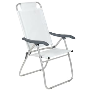 Resposta: Sim, a estrutura em alumínio e o revestimento em PVC são resistentes à água salgada e à maresia, tornando-a ideal para uso em praias. Pergunta: A cadeira é fácil de limpar?