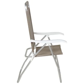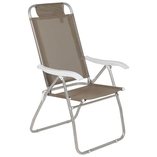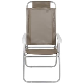 Especificações Tela: 100% poliéster com revestimento em PVC Estrutura: Alumínio com tubos reforçados Apoios de braço: Polipropileno Posições do encosto: 4 Capacidade de peso: Até 120 kg Medidas da Cadeira: 70 cm x 57 cm x 114 cm Itens Inclusos Cadeira de Praia Reclinável Prosa em Alumínio Bege Bel Perguntas Frequentes (FAQ) Pergunta: A cadeira é resistente à água salgada?