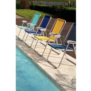 - Garanta momentos deliciosos à beira da praia, piscina ou acampamento, com a cadeira de praia Tramontina Creta Master em alumínio com assento azul.