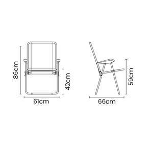 A cadeira de praia Tramontina Creta Master em Alumínio com assento roxo é indispensável para deixar seus momentos de lazer à beira da praia, piscina ou acampamento, muito mais confortáveis. Desenvolvida com tela em Sanet e estrutura em alumínio com antiderrapantes, ela é uma cadeira que suporta até 110 quilos. Seu design é inspirado na ilha de Creta e ela vem na cor roxa, que é super moderna e vibrante!Linha ou Coleção - PraiaLargura (cm) - 61 cmProfundidade (cm) - 66 cmAltura (cm) - 86 cmMaterial Principal - AlumínioMaterial das Pernas - AlumínioMaterial do Assento - SanetMaterial do Encosto - SanetCor - RoxoAcabamento - NaturalAcabamento das Pernas - NaturalQuantidade de Itens - 1Dobrável - SimAltura do chão até o assento - 42 cmSuporta até (kg) - 110 kgEmpilhável - SimBraço - SimAltura do chão até o braço - 59 cmTipo de Assento - FixoNecessita Montagem - NãoMais Informações - Peso Máximo Recomendável: 110 kgFabricação: Tubo em alumínio natural, tela em sanet (PVC) e apoios em polipropileno InjetadoCom antiderrapanteModelo: DobrávelRecomendações de Uso - Transportar sempre com cuidado;Não ficar em pé sobre o assento;Respeitar o limite máximo de peso;Após o uso, higienizar com sabão neutro e esponja macia, evitar produtos abrasivos;Prestar atenção especial à remoção de quaisquer vestígios de areia ou sal;Assegurar que o produto ficou completamente seco depois de lavá-lo. A umidade prolongada pode provocar a aparição de mofo;Para prolongar a vida útil do produto manter guardado quando não estiver em uso;Longas exposições ao sol podem provocar manchas ou perda da cor do produto;Retirar o produto do ambiente sempre que for higienizar o piso; alguns materiais de limpeza podem causar danos em contato com a peça.Peso - 1,67 kgMarca - TramontinaGarantia do fabricante - 12 meses para vícios ou defeitos de fabricaçãoAviso sobre o produto - Imagem meramente ilustrativaEAN - 7908538103671