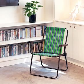 Dobrável e fácil de carregar, a Cadeira Xadrez é prática e confortável, perfeita para usar na sala de estar, na varanda, no parque e onde mais você quiser. Muito resistente, tem estrutura fabricada em aço carbono com acabamento em pintura epóxi à pó preta, que proporciona um visual moderno, e peças plásticas em polipropileno, suportando até 110 Kg. Para guardá-la, basta dobrar e colocar em qualquer cantinho da sua casa. Sua tela é produzida em 100% polietileno e conta com três opções de estampas: Mel (Amarelo), Marine (Azul), Carmin(Vermelho) e Oliva (Verde), as quais irão deixar qualquer ambiente de tirar o fôlego. Basta escolher sua cor preferida ou, melhor ainda, comprar todas para colecionar!