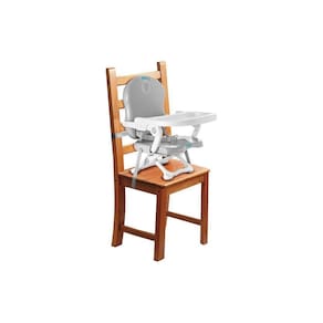 Caracteristicas Portátil: dobrável, leve e compacta. Fácil para transportar com a alça ajustável Segura: fixa na cadeira adulta através de cintas reguláveis, pés antiderrapantes e cinto de segurança de 3 pontos Confortável: Assento com 3 posições de altura e bandeja regulável também com 3 posições diferentes.