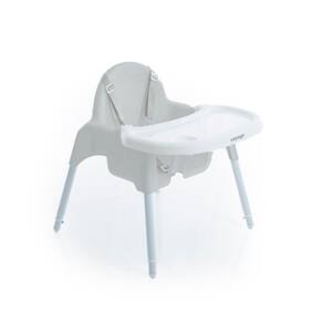 - Cadeira alta para refeição ou cadeira baixa para crianças - Bandeja removível pode ser armazenada na parte traseira - Porta-copos - Cores neutras - Apoio ajustável para os pés em 2 posições - Cinto de 5 pontos - Fácil de limpar