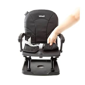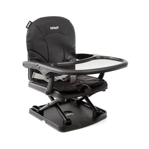Cadeira de Refeição Toast Black Lush Infanti A cadeira de refeição portátil Toast da Infanti acompanha as refeições do bebê com muito mais praticidade para os pais, mesmo em ambientes menores, onde o melhor aproveitamento do espaço se faz necessário, para que o bebê tenha sempre o local exclusivo para a sua alimentação, sempre à mão, perfeitamente higienizado, em casa, restaurantes ou hotéis ou aonde for. Portátil e ultracompacta, pode ser levada em viagens ou passeios e acoplada em cadeiras comuns de adulto. Regulagem de altura e capa protetora para maior conforto. Características da Cadeira Toast:- Capa protetora acolchoada, impermeável e lavável;- Os cintos e a capa impermeável são removíveis e laváveis à mão;- Bandeja removível, para ficar próximo a mesa dos pais ou para facilitar a limpeza;- Ajustável em 3 posições de altura, acompanhando o crescimento da criança para ficar na altura adequada à mesa;- Tiras para fixação nas cadeiras de adulto para maior segurança;- Possui alça, oferecendo praticidade para carregar nos passeios. Pesa apenas 2,5 kg;- Fechamento fácil para armazenar e guardar em qualquer cantinho.- Registro: Isento Medidas da Cadeira Aberta:- Altura: 48,4 cm- Largura: 38 cm- Profundidade: 44,2 cm