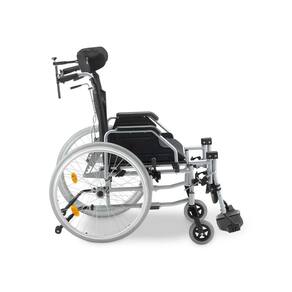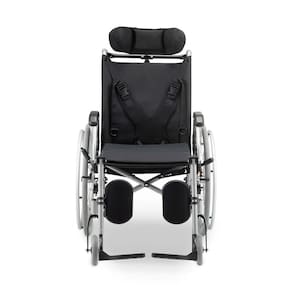 Características: Cor: Pintura da estrutura em cinza e partes têxteis em preto Conta com cinto torácico, apoio de panturrilha com elevação, anti-tombo, almofada, apoio de braços e pernas escamoteáveis, e pedais com ajuste de altura Conta com apoio de cabeça regulável Possui pneu traseiro e dianteiro rígido anti-furo Rodas traseiras com raios em aço e aro de propulsão em alumínio com quick-release