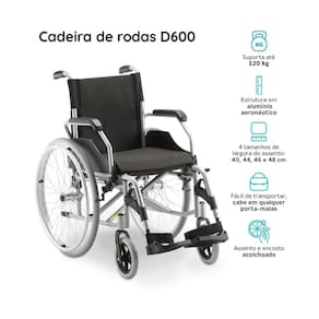 CADEIRA DE RODAS EM ALUMÍNIO DOBRÁVEL ATÉ 120 KG D600 DELLAMED