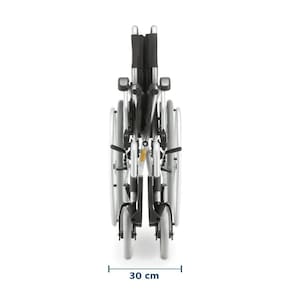 -Capacidade: Suporta até 120kg -Medidas da cadeira dobrada C x L x A (aprox.) com pernas: 101 x 28 x 91,5 cm -Altura do encosto das costas: 40 cm -Altura entre o apoio para os braços e o assento: 20 cm -Comprimento do apoio para os braços: 27 cm -Diâmetro externo do aro de propulsão: 53,5 cm -Diâmetro externo da roda traseira: 61 cm -Diâmetro externo da roda dianteira: 20 cm
