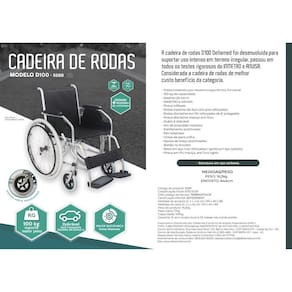 A Cadeira de Rodas D100 Dellamed foi desenvolvida para suportar uso intenso em terreno irregular, passou em todos os testes rigorosos do INMETRO e ANVISA. Considerada a cadeira de rodas de melhor custo benefício da categoria.
