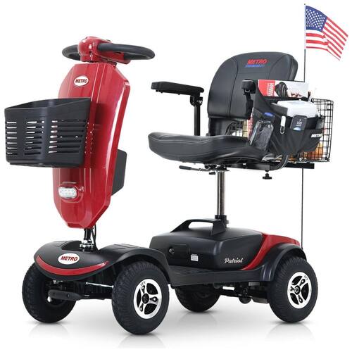 Portátil: Fácil de montar, desmontar e transportar. O scooter de mobilidade pode ser desmontado em 4 partes facilmente, sendo que a peça mais pesada tem 28,5 kg (base do scooter). Pode ser colocado no porta-malas do seu carro, ideal para viagens.