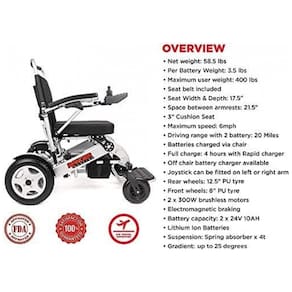 DESIGN LEVE E COMPACTO A cadeira de rodas elétrica Quattro XL tem largura de assento de 54,6 cm (entre os braços) e suporta até 181 kg. Aprovada por companhias aéreas e para cruzeiros, ela pode ser dobrada em segundos, se encaixando na maioria dos porta-malas de carros compactos. Ambas as laterais dos braços podem ser levantadas e o controlador é removível, facilitando o controle e o manuseio. Acompanha uma bolsa de viagem extra acolchoada, tornando o transporte ainda mais fácil e conveniente.