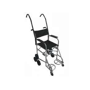 Conta com cinto de segurança tipo automotivo, cabos removíveis para maior controle e capacidade para até 100 kg. Seu assento de 40 cm de largura e altura total de 95 cm proporcionam conforto ao usuário.