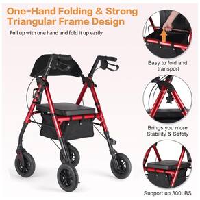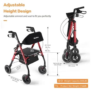 Os andadores Rollator Ambliss são duráveis e estáveis, projetados com estrutura reforçada de alumínio e barras de suporte duplas, com tubulação espessa e construção robusta, suportando até 136kg. Este andador dobrável garante durabilidade e estabilidade a cada passo. Leve e portátil, pesando apenas 7,9kg, pode ser dobrado com facilidade com uma mão, garantindo armazenamento compacto e portabilidade para viagens ou uso diário. Com assento ajustável de 50,5cm a 57,4cm e alça de 83cm a 102cm, esse andador acomoda usuários de 132cm a 170cm de altura. Possui rodas de 20cm que deslizam suavemente em vários terrenos. Oferece conforto máximo com assento acolchoado de 35cm e encosto largo e respirável, proporcionando conforto aprimorado para a cintura e os quadris. Inclui suporte de bengala, porta-copos e cesta de armazenamento, permitindo que os usuários carreguem seus pertences com facilidade. Deixe as mãos livres e desfrute da mobilidade interna e externa.