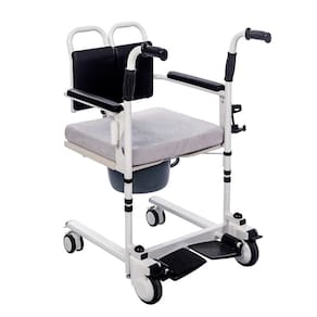 Cadeira de transferência multifunc com manivelas - montserrat Tamanho: único Cadeira de transferência e higiênica jl2000 montserrat A cadeira de transferência e higiênica jl2000 é a escolha ideal para quem precisa de uma cadeira resistente e versátil para a realização de atividades cotidianas. Com sua estrutura em aço, ela garante durabilidade e segurança durante a transferência do usuário. Conforto: seus apoios de braços, costas e apoios dos pés em pvc, aliados a uma almofada de espuma macia para o assento, proporcionam conforto e praticidade durante o uso prolongado. Higiênica: pode ser utilizada também como cadeira higiênica, para usuários que tem maior dificuldade em usar o banheiro. Possui balde coletor de plástico para que possa realizar a coleta de maneira fácil e eficiente. Estrutura reforçada: fabricada em aço carbono, a cadeira possui uma estrutura que suporta o peso de até 100kg, tornando a cadeira capaz de atender as necessidades de uma ampla variedade de usuários. Regulagem de altura: conta com um sistema de regulagem de altura manual, através de pino trava na haste principal do assento. Dessa forma, é possível acomodar o usuário sem se preocupar com a altura do leito onde ele se encontra. A altura do assento é ajustável entre 44cm até 60cm, permitindo que a cadeira seja adaptada às necessidades de cada usuário. Mobilidade: seus freios de pé, rodas dianteiros de 5 polegadas e rodas traseiras de 3 polegadas permitem um deslocamento suave e silencioso em ambientes internos e externos, além de garantir segurança durante a transferência do usuário. Somados aos benefícios citados, a cadeira tem de 12 meses, oferecendo ainda mais tranquilidade e segurança. Invista na cadeira de transferência e higiênica jl2000 montserrat e garanta praticidade, conforto e segurança em suas atividades diárias. Este produto não é uma cadeira de banho. Não deve ser utilizada para essa finalidade Características Estrutura em aço; Apoio de braço, costas e assento em pvc; Rodas dianteiras de 5 com freios de pé; Rodas traseiras de 3 com freios de pé; Apoio de pés em plástico; Acompanha balde coletor com tampa; Capacidade de carga: 100kg; Peso da cadeira: 18kg; Almofada para mais conforto. Observações O produto não é uma cadeira de banho. Não deve ser molhada; Produto de regulagem manual. Para evitar acidentes, não regular altura do assento enquanto usuário estiver acomodado nela; Cadeira não projetada para utilização sozinho. O usuário deverá utilizá-la sempre acompanhado de outra pessoa. Registro anvisa: 80153030120 : 12 meses contra defeito de fabricação. Marca: Não Informado