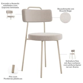 Tempo de montagem: na | Altura do assento a partir do solo: 48 cm | Color: Creme | ColorFamily: Creme | ColorSimple: Creme | ColorSupplier: Creme | Cor: Creme | Altura da cadeira: 98cm | Cor da estrutura da cadeira: arana | Cor do assento: Canela | Cor do estofamento: Creme | Desenho do tecido: não contem desenho | É cadeira de balanço: Não | É dobrável: Não | É empilhável: Não | Espessura do assento: 6 cm | Fabricante: Lyam Decor | Firmeza: Sim | Largura da cadeira: 46cm | Largura do assento: 6 cm | Material: espuma laminada, aço carbono e plastico | Material do estofamento: Espuma Laminada | MaterialFamily: espuma laminada, aço carbono e plastico | Model: Barcelona | OriginCountry: Brasil | OriginState: PR | Peso máximo suportado: suporta até 120 kg | ProductContents: 1 Cadeira | ProductHeight: 98cm | ProductInstructions: Produto para uso residencial em ambiente interno, não devendo ficar exposto diretamente ao sol, calo | ProductLength: 63cm | ProductWarranty: 90 dias após o recebimento do produto | ProductWeight: 6 kg | ProductWidth: 46cm | Profundidade da cadeira: 63cm | Profundidade do assento: 42 cm | Requer montagem: Sim, a montagem é simples mas sugerimos a contratação do nosso serviço de montagem (para os CEPs em | SizeDescription: Peso: 6 kg, Altura: 98 cm, Largura: 46 cm | SupplierSimpleName: Cadeira Decorativa Estofada Para Sala De Jantar Barcelona Arena L02 Bouclê Creme - Lyam | cor: bege