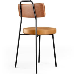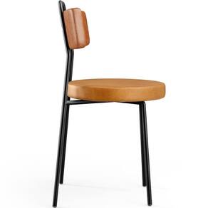 Revestimento do encosto em Couríssimo na cor Camel e do assento em Couríssimo na cor Whisky, com acabamento semi brilho.