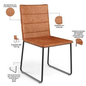 Color: Marrom | ColorFamily: Marrom | ColorSimple: Marrom | ColorSupplier: Camel | Material: Estrutura em Madeira, Revestimento em Couríssimo e espuma | MaterialFamily: Madeira, couro sintético e espuma | Model: Maya | OriginCountry: Nacional | OriginState: PR | ProductContents: 01 Cadeira | ProductHeight: 174 cm | ProductInstructions: Produto para uso em ambiente interno, nao devendo ficar exposto ao sol, calor e umidade excessivos. | ProductLength: 53 cm | ProductWarranty: 90 dias após o recebimento do produto | ProductWeight: 6,6 kg | ProductWidth: 46 cm | SizeDescription: Altura: 174 cm x Largura: 46 cm x Profundidade: 53 cm | SupplierSimpleName: Cadeira Decorativa Estofada Para Sala De Jantar Preto Maya L02 Couríssimo Camel - Lyam Decor Decor