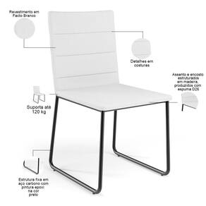Color: Branco | ColorFamily: Branco | ColorSimple: Branco | ColorSupplier: Branco | Material: Estrutura em Madeira, Revestimento em Facto e espuma | MaterialFamily: Madeira e Espuma | Model: Maya | OriginCountry: Nacional | OriginState: PR | ProductContents: 01 Cadeira | ProductHeight: 174 cm | ProductInstructions: Produto para uso em ambiente interno, nao devendo ficar exposto ao sol, calor e umidade excessivos. | ProductLength: 53 cm | ProductWarranty: 90 dias após o recebimento do produto | ProductWeight: 6,6 kg | ProductWidth: 46 cm | SizeDescription: Altura: 174 cm x Largura: 46 cm x Profundidade: 53 cm | SupplierSimpleName: Cadeira Decorativa Estofada Para Sala De Jantar Preto Maya L02 Facto Branco - Lyam Decor Decor