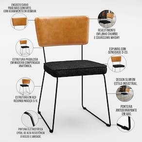 O espetáculo que é a Cadeira Decorativa Estofada Sala De Jantar Allana L02 Couríssimo Whisky Linho Chumbo - Lyam Decor vem para agregar ainda mais valor na decoração da sua casa. Sua estrutura em aço remete-nos ao estilo industrial que surgiu em Nova York no século XX, já o assento e encosto estofados trazem equilíbrio e conforto criando a combinação perfeita para o ambiente.