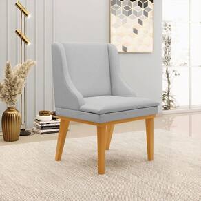 Cadeira Decorativa Sala De Jantar Base Fixa De Madeira Firenze Linho Cinza/castanho G19 - Gran Belo