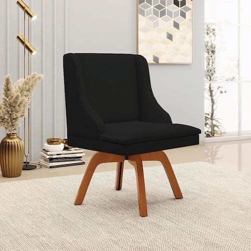 Cadeira Decorativa Sala De Jantar Base Giratória De Madeira Firenze Linho Preto/natural G19